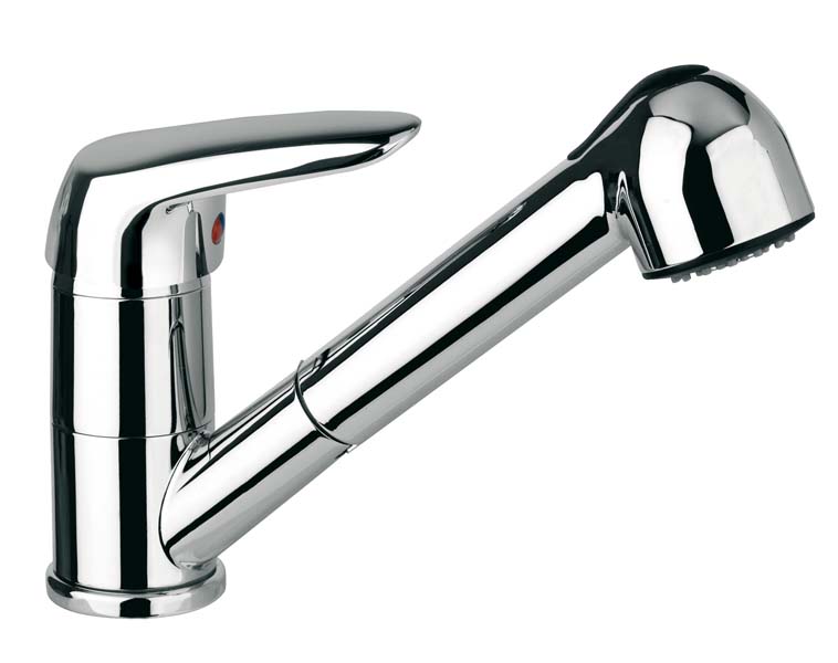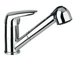 Deck mounted, with swivel spout and pull out shower