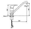 Deck mounted, with swivel spout and dish washer connection